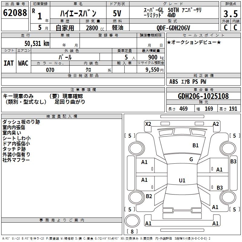 TOYOTA HIACE VAN SUPER GL50TH ANNIVER SA4WD - лот 62088