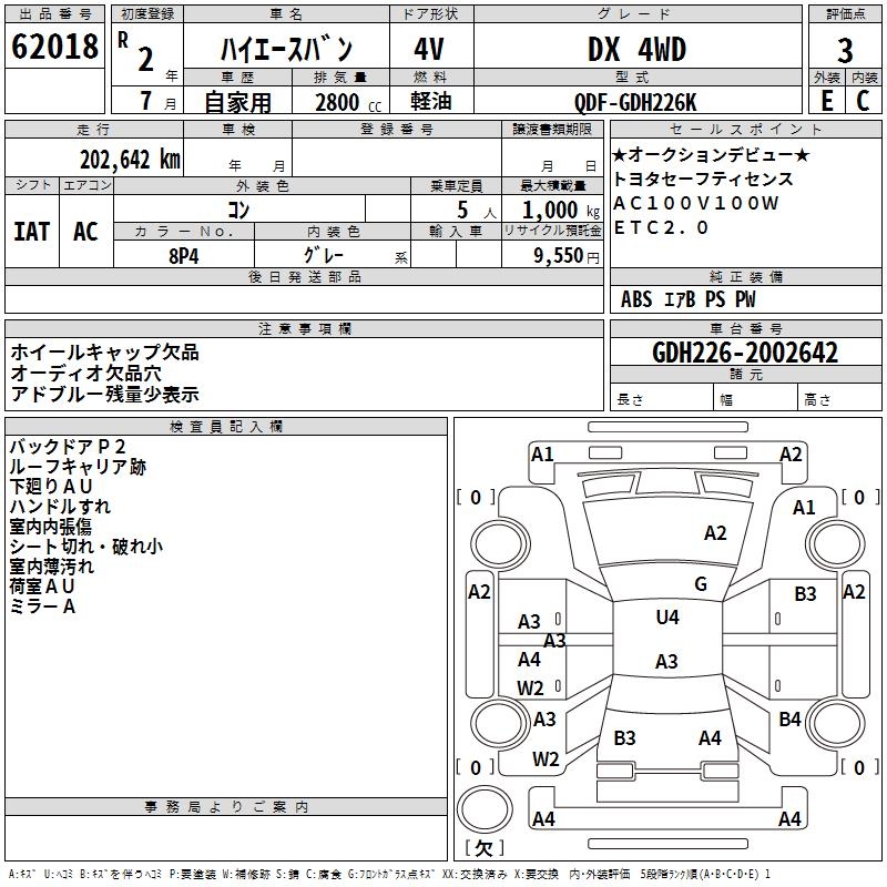 TOYOTA HIACE VAN DX 4WD - лот 62018