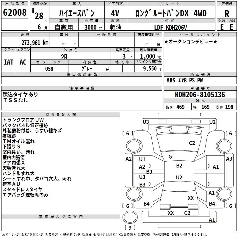 TOYOTA HIACE VAN LONG ROOTVAN DX 4WD - лот 62008