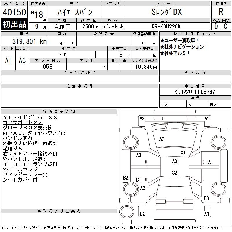 TOYOTA HIACE VAN S LONG DX - лот 40150