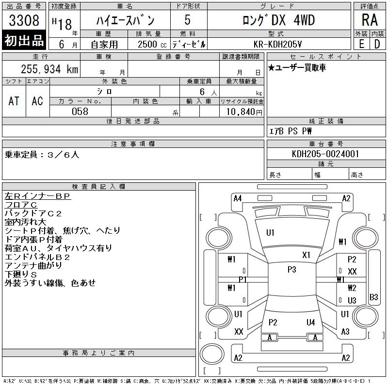 TOYOTA HIACE VAN LONG DX 4WD - лот 3308