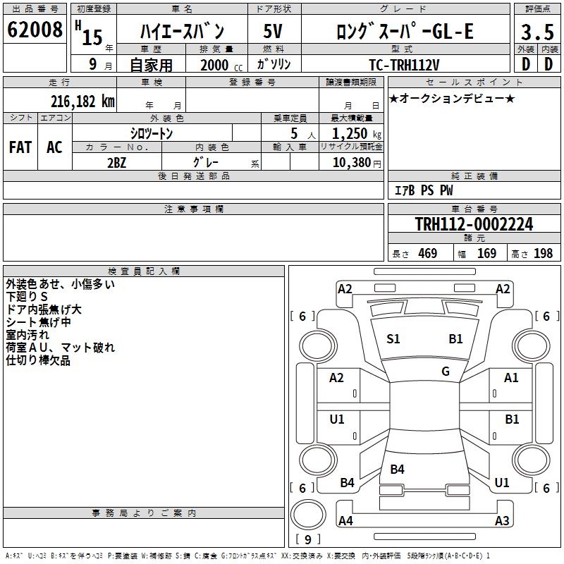 TOYOTA HIACE VAN LONG SUPER GL-E - лот 62008