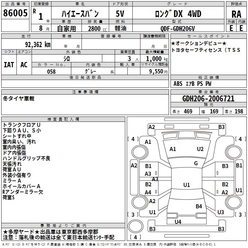 TOYOTA HIACE VAN LONG DX 4WD - лот 86005
