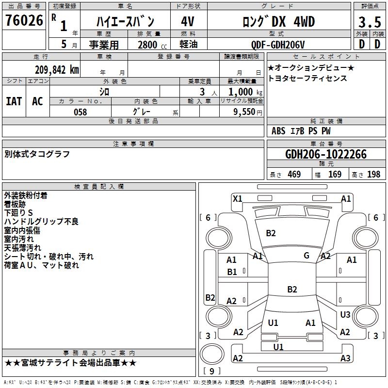 TOYOTA HIACE VAN LONG DX 4WD - лот 76026