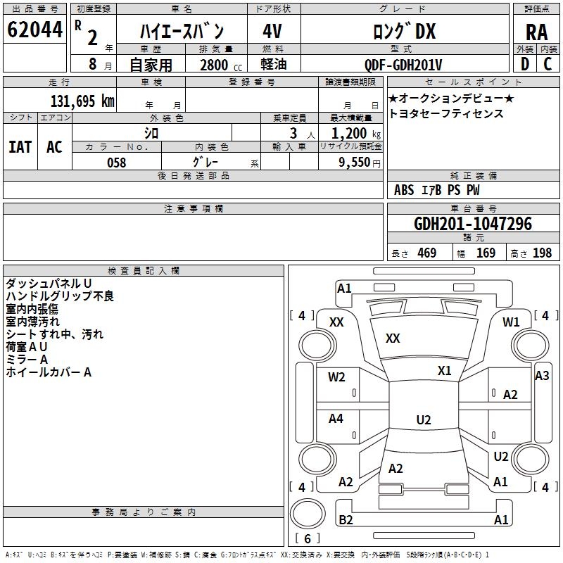 TOYOTA HIACE VAN LONG DX - лот 62044