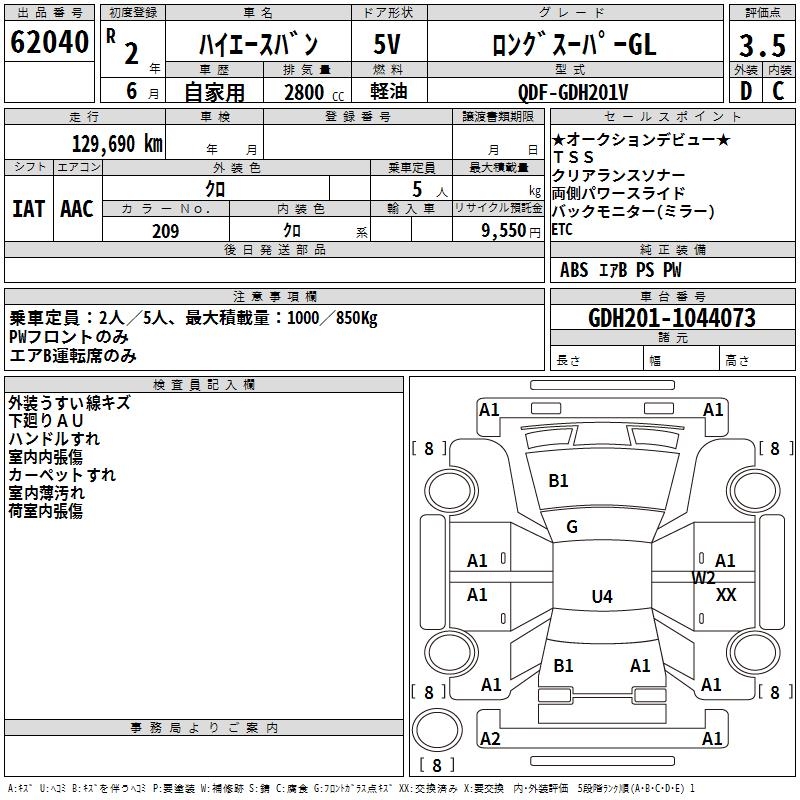 TOYOTA HIACE VAN LONG SUPER GL - лот 62040