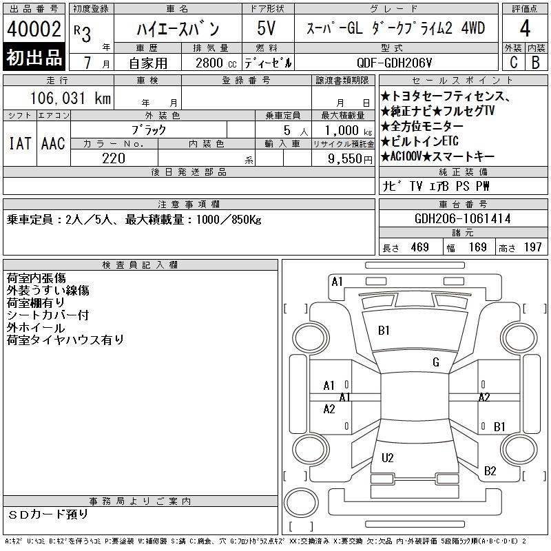 TOYOTA HIACE VAN SUPER GL DARK PRA I4WD - лот 40002