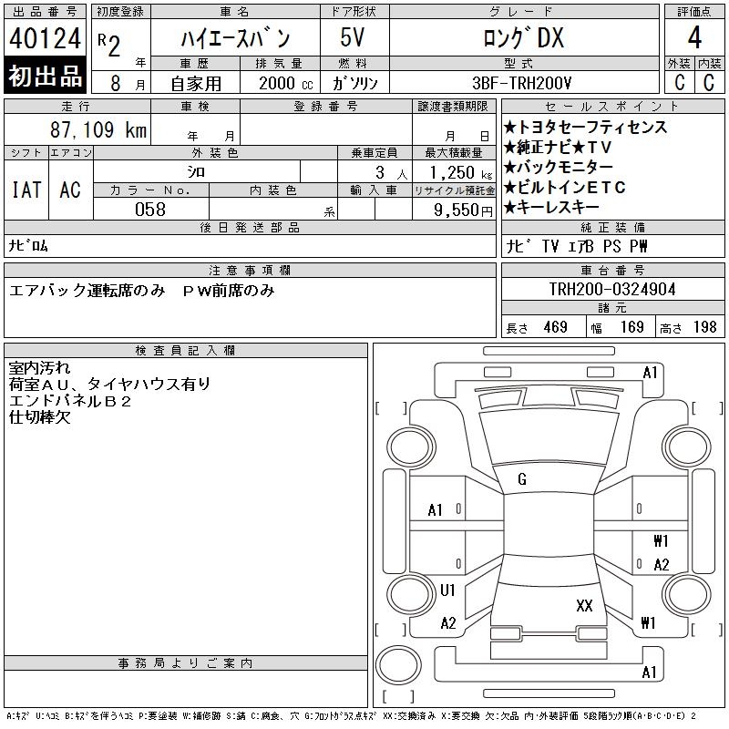 TOYOTA HIACE VAN LONG DX - лот 40124