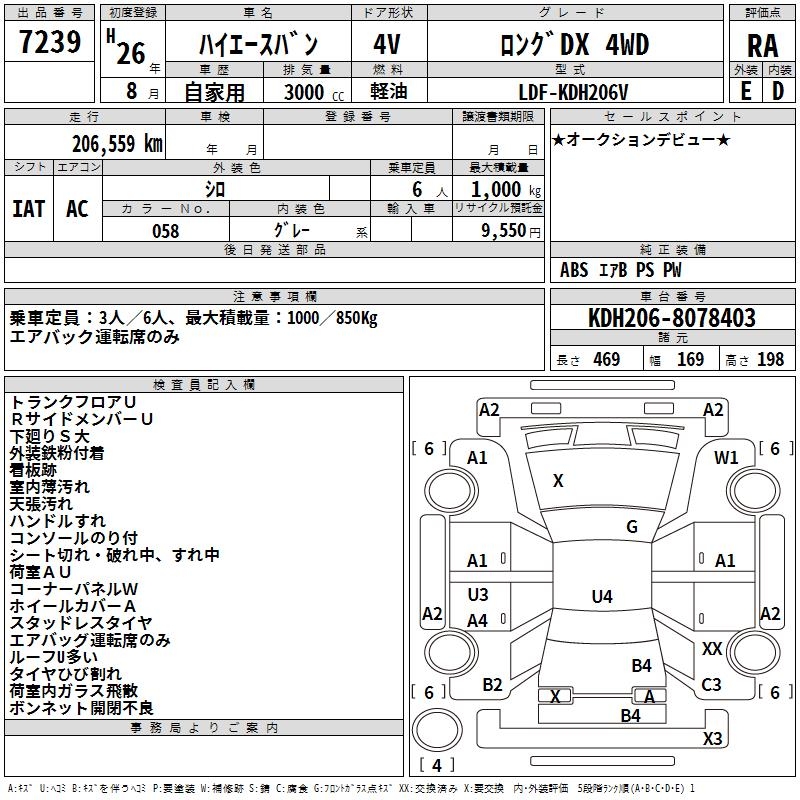 TOYOTA HIACE VAN LONG DX 4WD - лот 7239