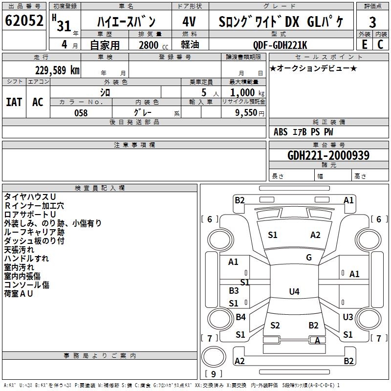 TOYOTA HIACE VAN S LONG WIDE DX GL PACK - лот 62052
