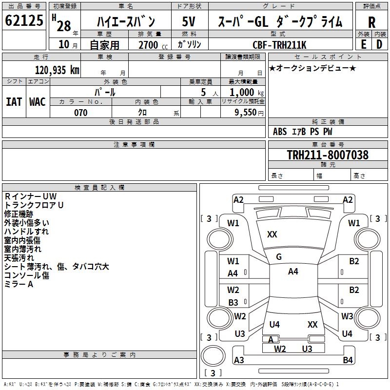 TOYOTA HIACE VAN SUPER GL DARK PRIME - лот 62125