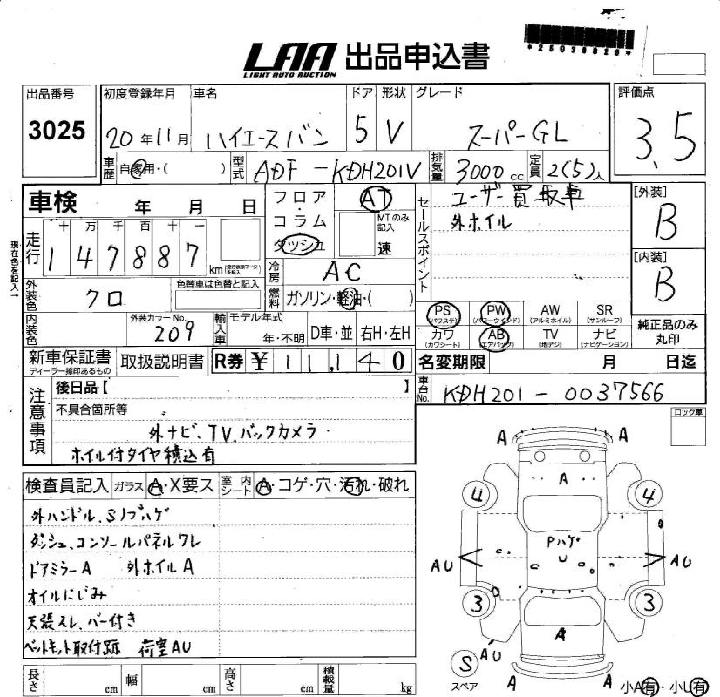 TOYOTA HIACE VAN SUPER GL - лот 3025