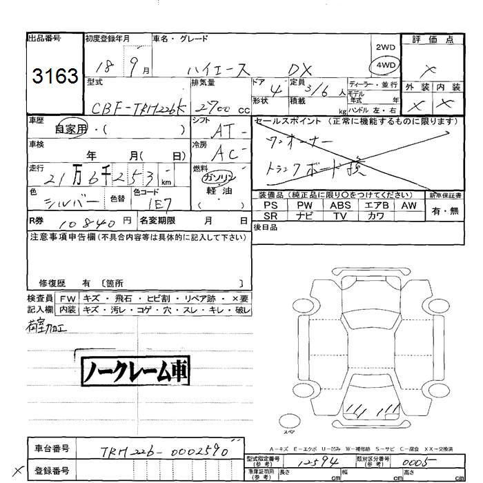 TOYOTA HIACE VAN 4WD DX - лот 3163