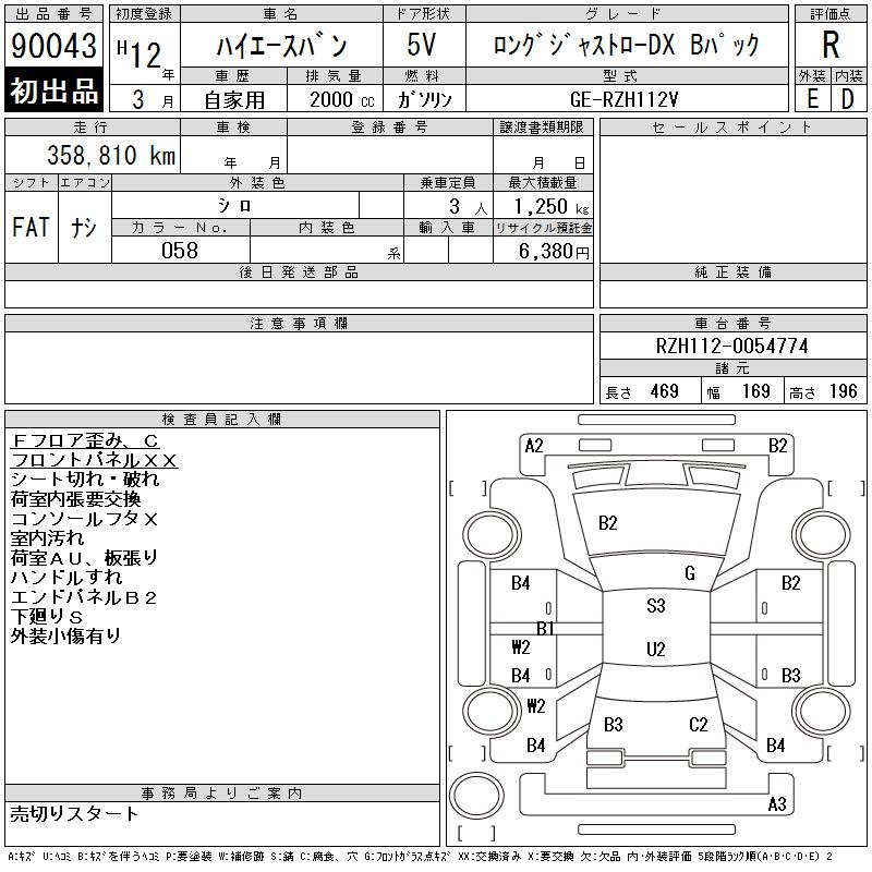 TOYOTA HIACE VAN LONG JUSTLOW DX B PACK - лот 90043