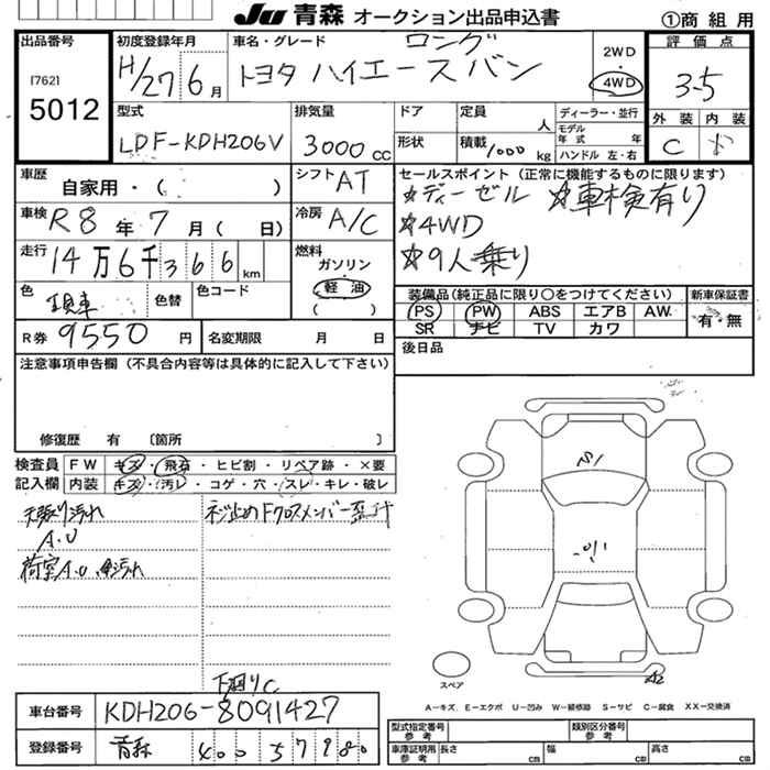 TOYOTA HIACE VAN 4WD - лот 5012
