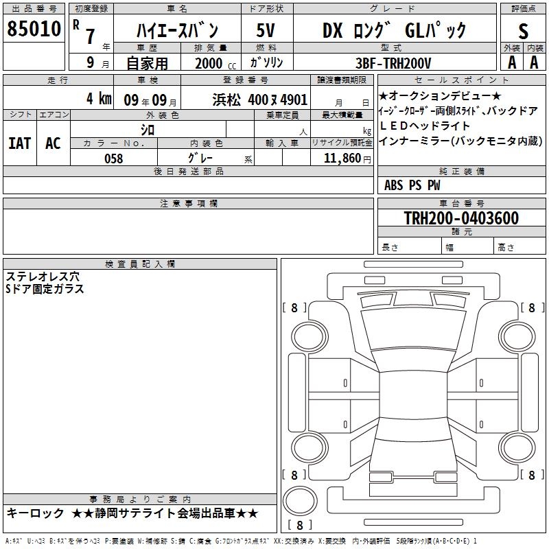 TOYOTA HIACE VAN DX LONG GL PACK - лот 85010