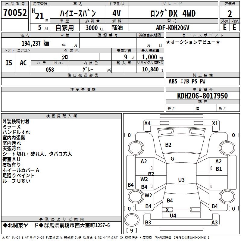 TOYOTA HIACE VAN LONG DX 4WD - лот 70052
