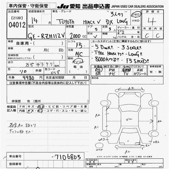 TOYOTA HIACE VAN DX 3 PERSON - лот 4012