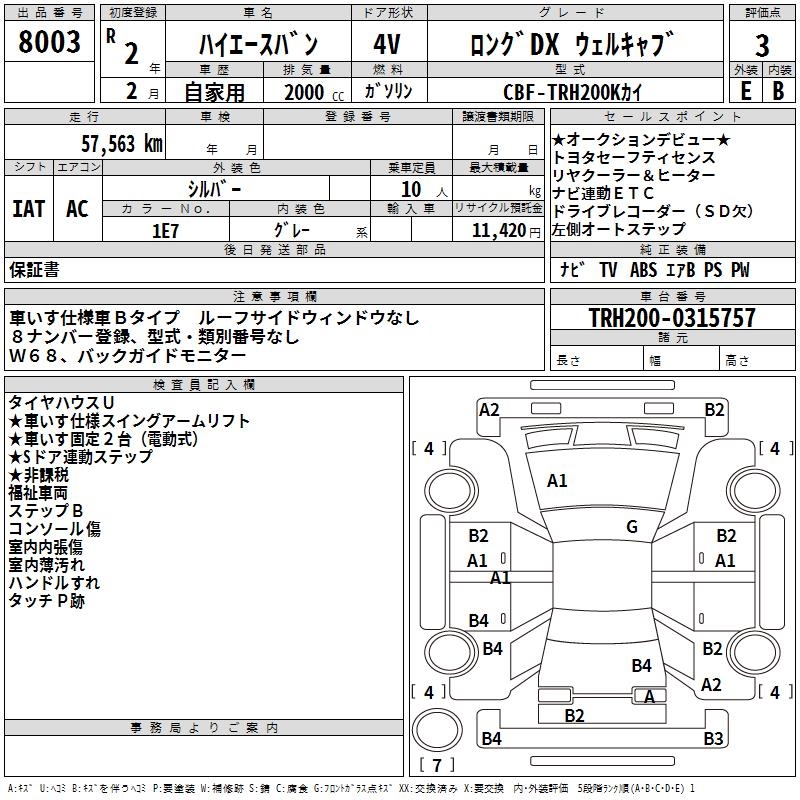 TOYOTA HIACE VAN LONG DX WELL CAB - лот 8003