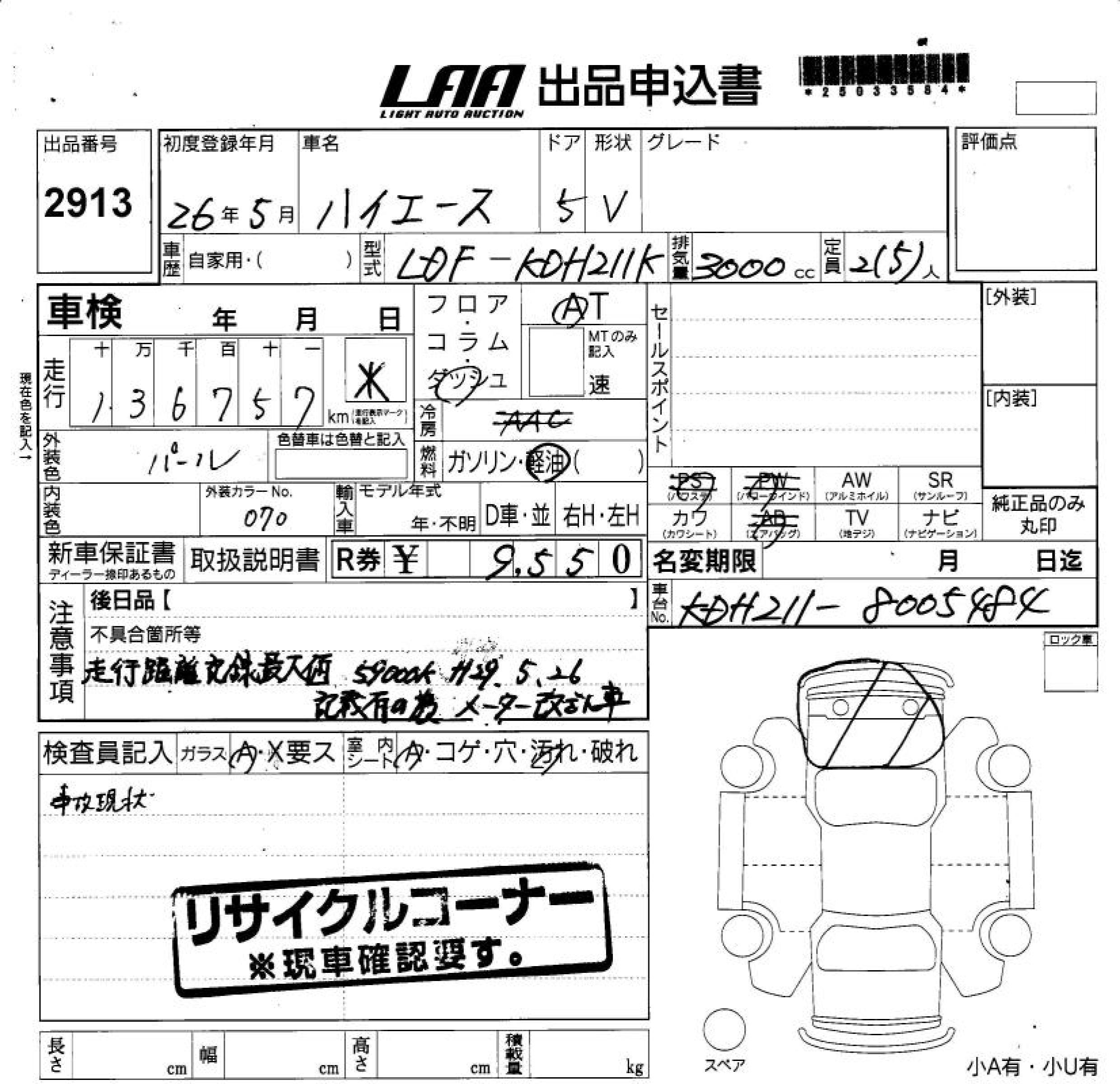 TOYOTA HIACE VAN - лот 2913