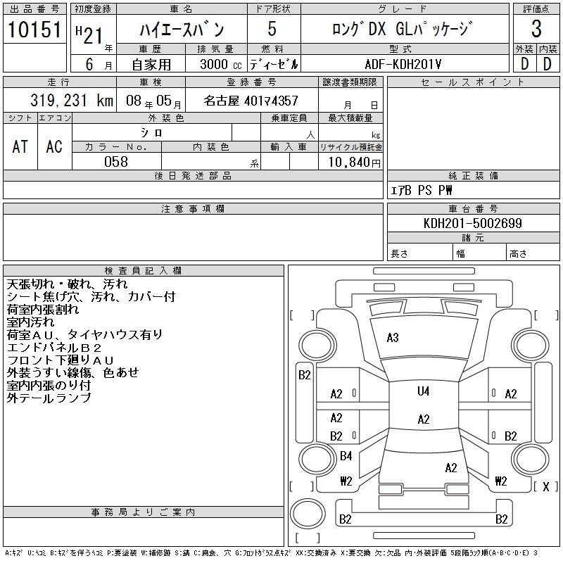TOYOTA HIACE VAN LONG DX GL PACKAGE - лот 10151