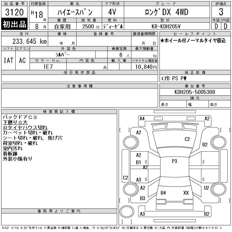 TOYOTA HIACE VAN - лот 3120