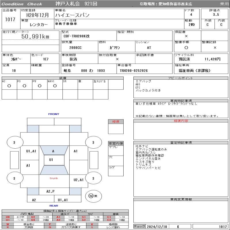 TOYOTA HIACE VAN - лот 1017