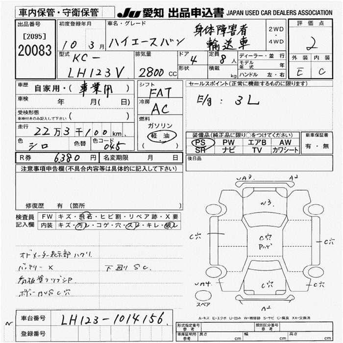 TOYOTA HIACE VAN SIN MANY I LITTLE GAI CAR YUSOU CAR - лот 20083