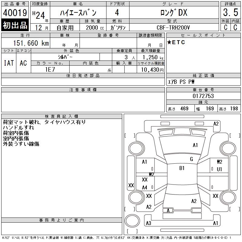 TOYOTA HIACE VAN LONG DX - лот 40019