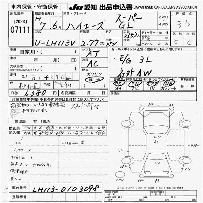 TOYOTA HIACE VAN SUPER GL - лот 7111