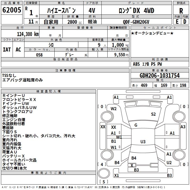 TOYOTA HIACE VAN LONG DX 4WD - лот 62005