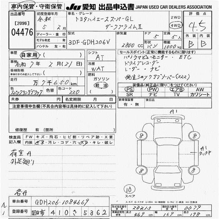 TOYOTA HIACE VAN SUPER GL DARK PRIME 2 4W - лот 4476