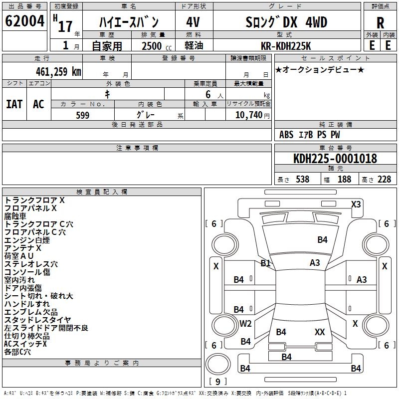 TOYOTA HIACE VAN S LONG DX 4WD - лот 62004