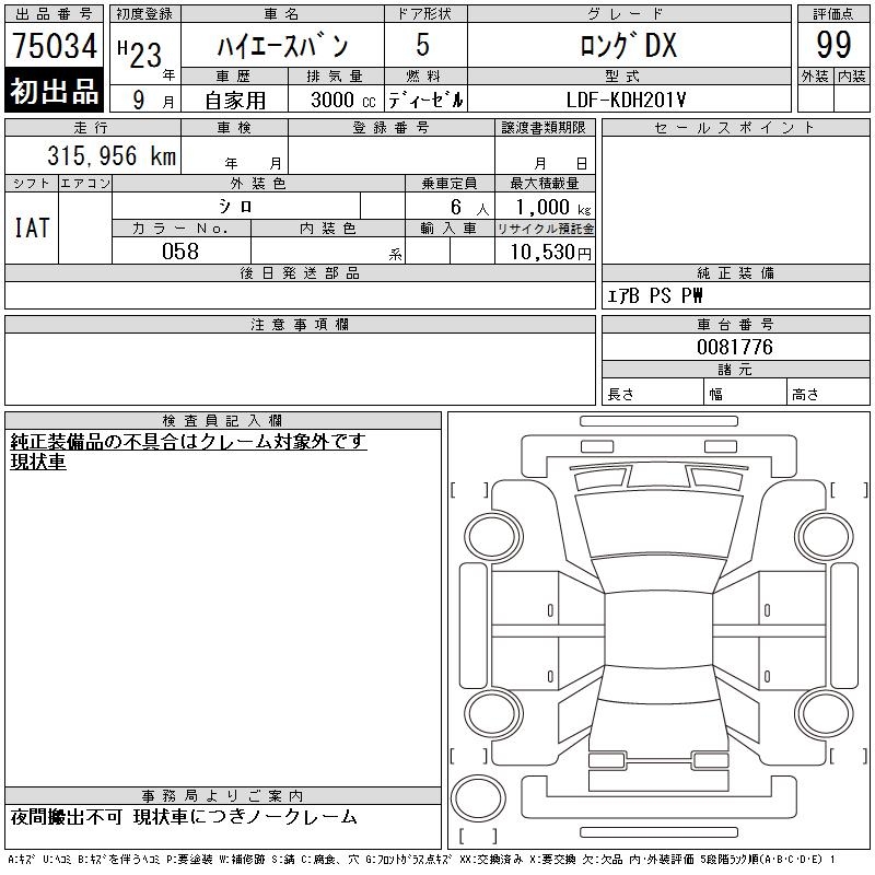 TOYOTA HIACE VAN LONG DX - лот 75034