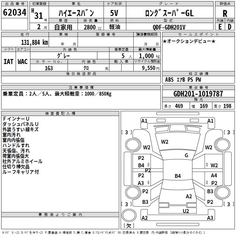 TOYOTA HIACE VAN LONG SUPER GL - лот 62034
