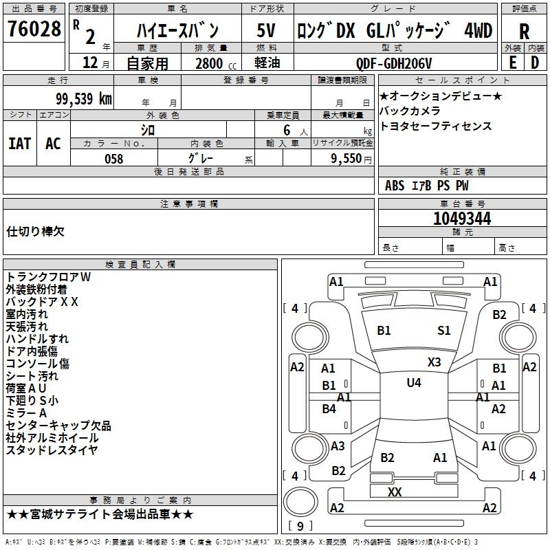 TOYOTA HIACE VAN LONG DX GL PACKAGE 4WD - лот 76028