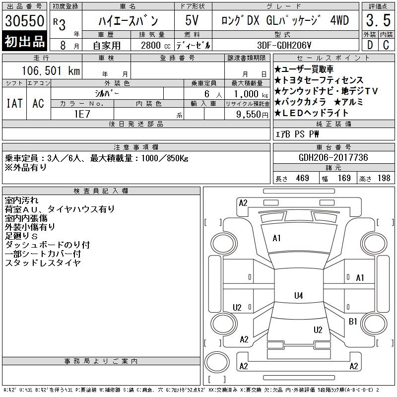 TOYOTA HIACE VAN LONG DX GL PACKAGE 4WD - лот 30550