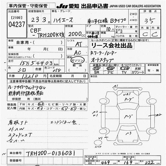 TOYOTA HIACE VAN KRU MY S USE CAR B TYPE - лот 4237