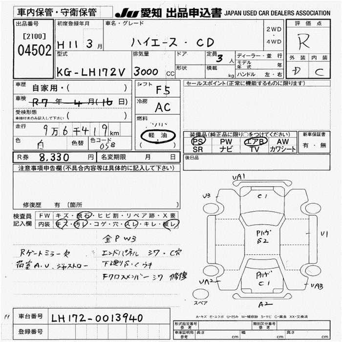 TOYOTA HIACE VAN CD 3 PERSON - лот 4502