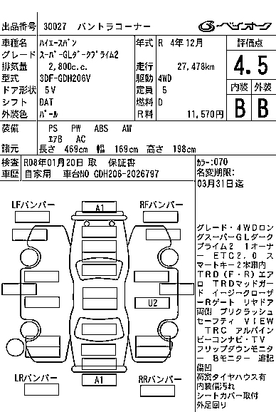 TOYOTA HIACE VAN SUPER GL DARK PRIME 2 - лот 30027