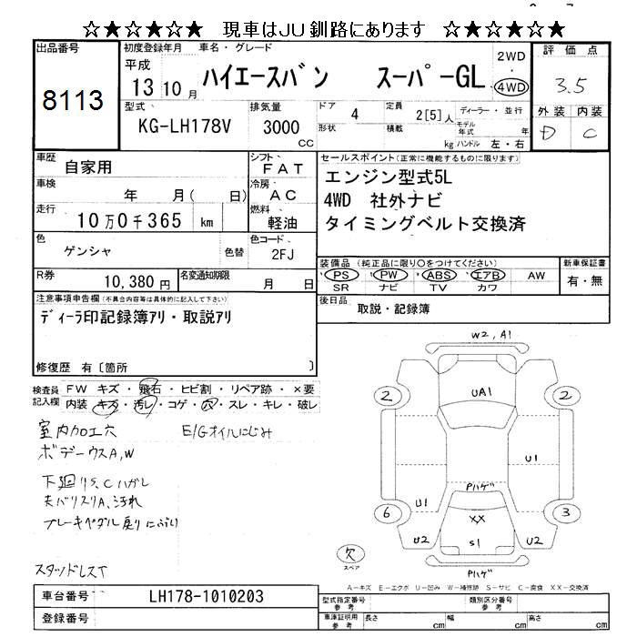 TOYOTA HIACE VAN 4WD SUPER GL - лот 8113