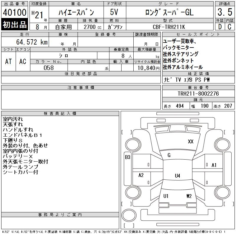 TOYOTA HIACE VAN LONG SUPER GL - лот 40100