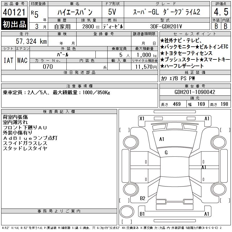 TOYOTA HIACE VAN SUPER GL DARK PRIME 2 - лот 40121