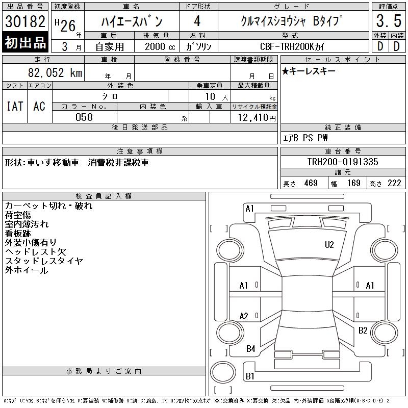 TOYOTA HIACE VAN KRU MY S USE CAR B TYPE - лот 30182