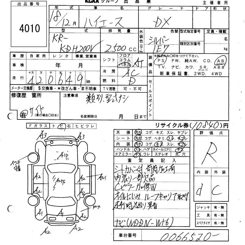 TOYOTA HIACE VAN DX - лот 4010