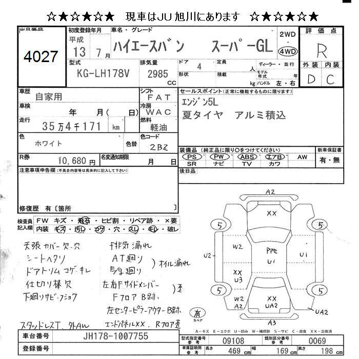 TOYOTA HIACE VAN 4WD SUPER GL - лот 4027