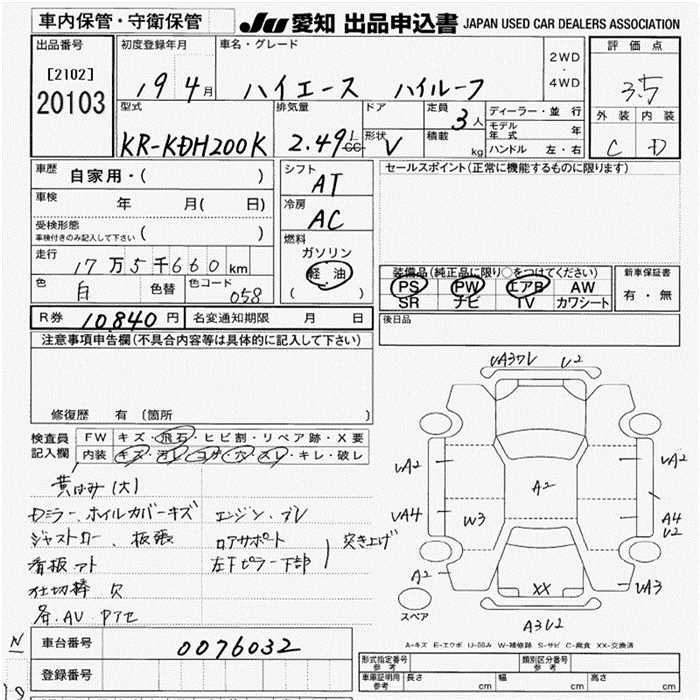 TOYOTA HIACE VAN 3 PERSON - лот 20103