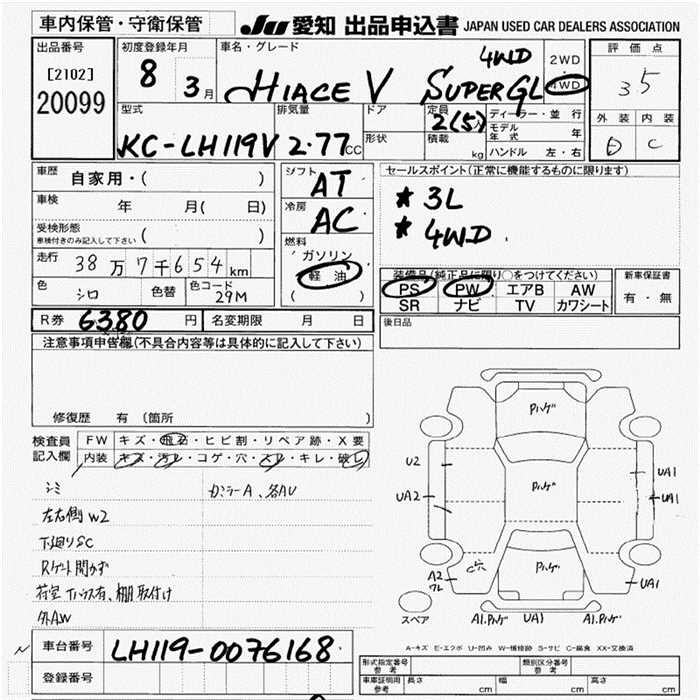 TOYOTA HIACE VAN SUPER GL 4WD - лот 20099