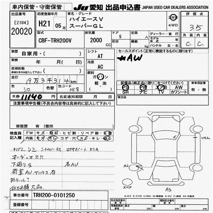 TOYOTA HIACE VAN SUPER GL - лот 20020
