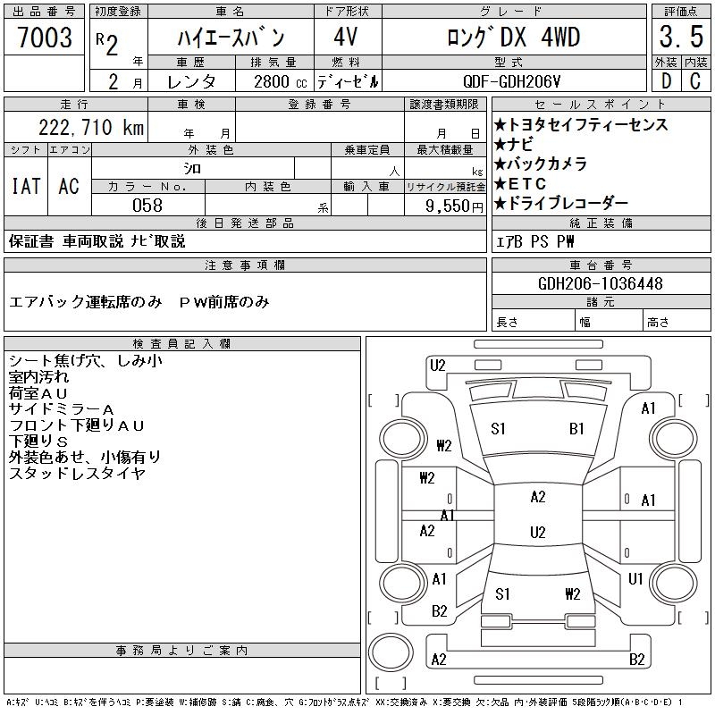 TOYOTA HIACE VAN LONG DX 4WD - лот 7003